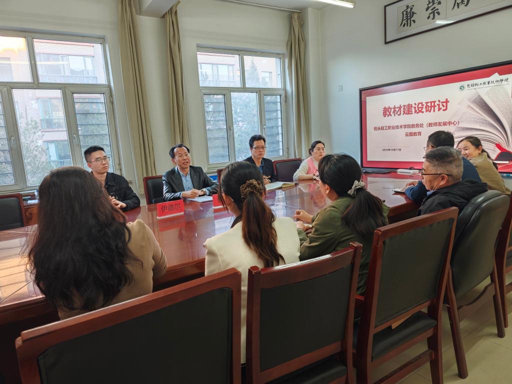 10月17日下午,教务处(教师发展中心)与云图教育集团联合召开了教材建设研讨会。云图教育集团总经理张兴、总经理助理伊德尔受邀参会并指导,会议由教务处(教师发展中心)处长赵金考主持,食品智能加工专业群内相关专业的教材主编参加会议。